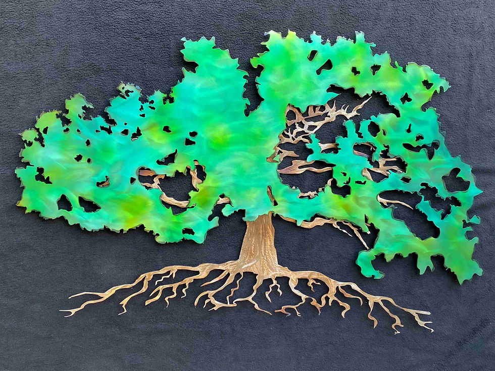 Horses, wildlife, flora and fauna - Esther at Benedict Metal Art covers it all. The colors are done by heat treating the steel and using transparent automotive paints to bring out a stunning finish that will turn heads.